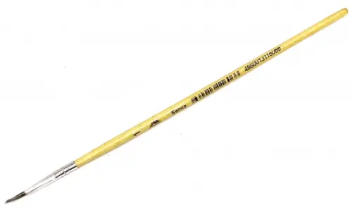 Кисть круглая из волоса Белки №1. При намокании волос белки собирается в плотный пучок, поэтому такие кисти подходят для рисования тонких линий и аккуратной работы. Пучок надежно вклеен в металлическую обойму. Обойма закреплена на деревянной ручке двойным обжатием. Благодаря многослойному лаковому покрытию пользоваться кистью удобно и приятно. Кисть предназначена для рисования гуашью, акварелью, акриловыми красками, а также для нанесения клея.