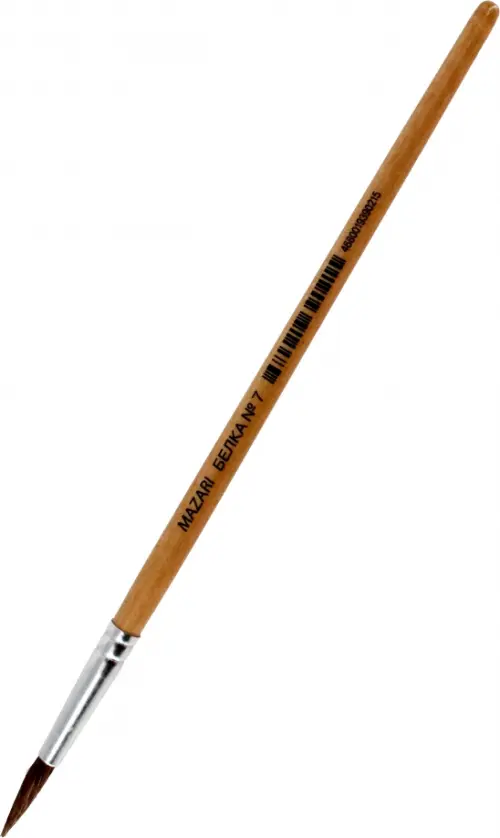 Кисть художественная, белка, №7, круглая, обойма обжимная, ручка деревянная, лакированная, ОПП-упаковка.