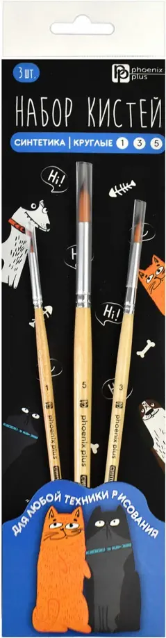 Набор художественных кистей Арт-братва, 3 штуки, нейлон, круглые