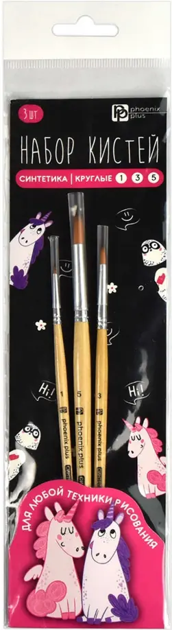 Набор художественных кистей Арт-братва, 3 штуки, нейлон, круглые