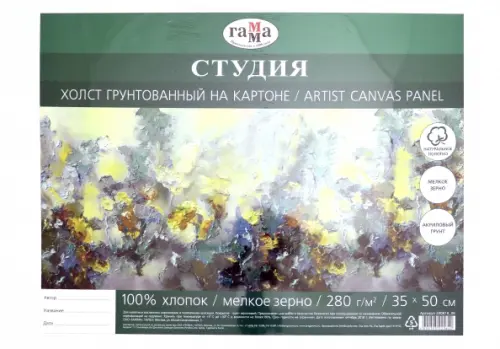Холст на картоне "Студия", 35x50 см, 100% хлопок, мелкое зерно