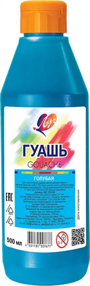 Гуашь легко смывается с рук и одежды. Не имеет неприятного запаха.