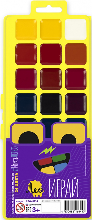 Акварель медовая Играй, 24 цвета, без кисти