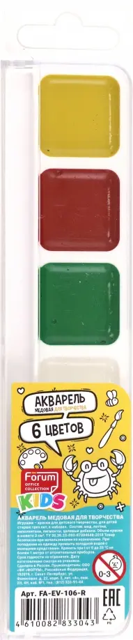 Акварель FORUM Office Collection KIDS медовая, 6 цв. европодвес, пласт.кор., б/к