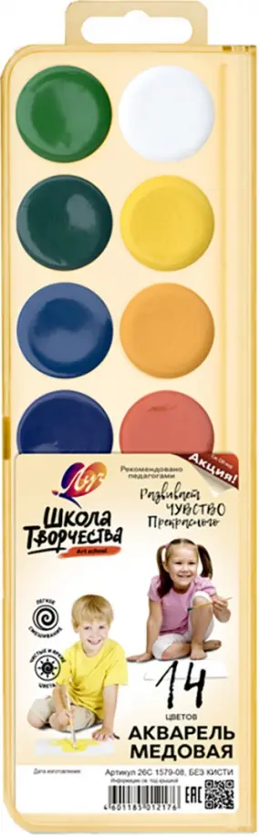 Акварель медовая Школа творчества, 14 цветов, без кисти