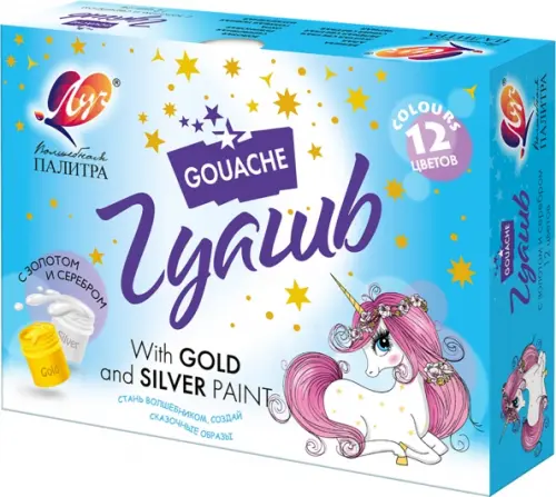 - Наличие баночек краски с золотым и серебряным цветом гуаши