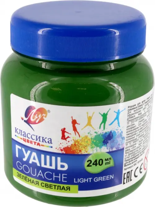 Гуашь Классика, зеленая светлая, 240 мл