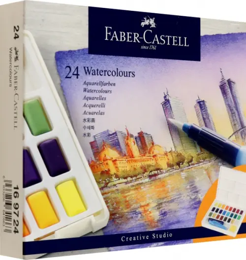 Faber-Castell предлагает начинающим и любителям три набора с акварельными красками в кюветах, водяной кистью и съемной палитрой для смешивания. Все традиционные акварельные техники могут быть реализованы с помощью высокопигментированных акварелей. Прилагаемая водяная кисть, которая может создавать множество фантастических эффектов, является идеальным компаньоном для рисования на открытом воздухе или в поездках. Яркие и яркие цвета, в том числе металлические и неоновые, впечатляют пользователей и поддерживают их, даря радость и выражение их собственному творчеству.