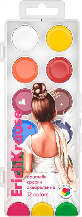 Акварельные краски ErichKrause - оптимальный выбор для школьного рюкзака. Новая уникальная формула акварели позволяет краске значительно легче разводиться водой, хорошо удерживаться кистью и равномерно ложиться на бумагу, создавая мягкие переходы цвета. По мере высыхания акварельный рисунок приобретает матовый насыщенный оттенок без посторонних бликов и затеков. Краска наиболее точно передает игру цвета и света на рисунке, создает цветовые комбинации. Для работы с акварелью лучший эффект достигается при использовании акварельной бумаги ErichKrause.
