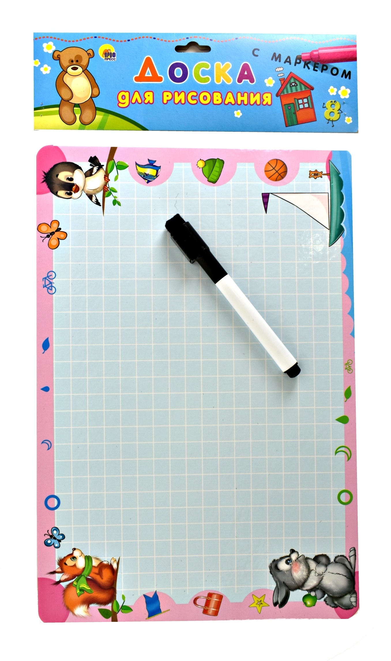 При помощи доски для рисования и прилагающегося к ней маркера Ваш малыш сможет создать любую картину. А начать можно с перерисовывания иллюстраций, расположенных по краям доски. Сначала ребенку можно предложить назвать персонаж или предмет на доске, а затем нарисовать его.