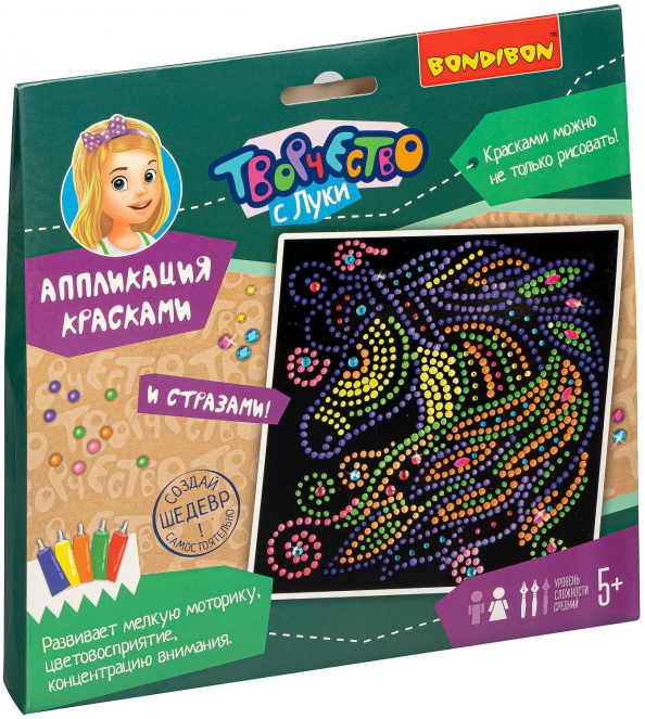 Состав: основа для аппликации, набор акриловых красок, стразы.