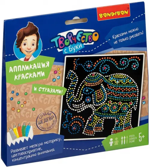 Состав: основа для аппликации, набор акриловых красок, стразы.