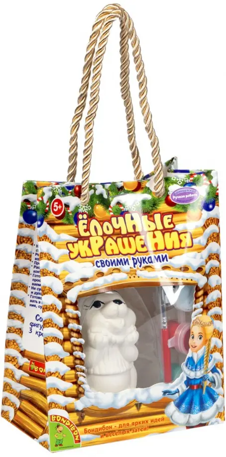В комплекте есть всё необходимое для росписи по керамике: фигурка зайчика и 3 разноцветные краски с кисточкой. Подарочная упаковка в сумке. Рекомендуемый возраст 5+.