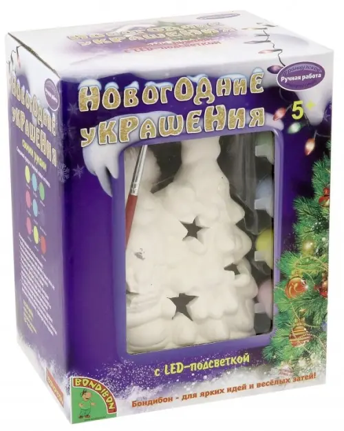 Набор для творчества "Дед Мороз с подсветкой" из серии "Новогодние украшения" представляет собой оригинальный светильник, выполненный в форме деда Мороза, стоящего возле ели. Ребенку нужно будет самостоятельно оформить изделие. С помощью ярких красок, входящих в комплект, можно будет раскрасить ночник и придать ему завершенный праздничный вид.