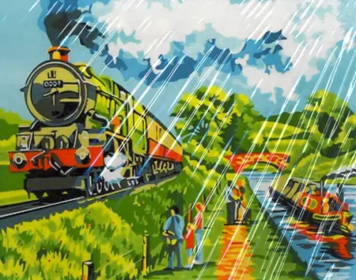 Холст с красками. Рисование по номерам. Железная дорога, 40x50 см