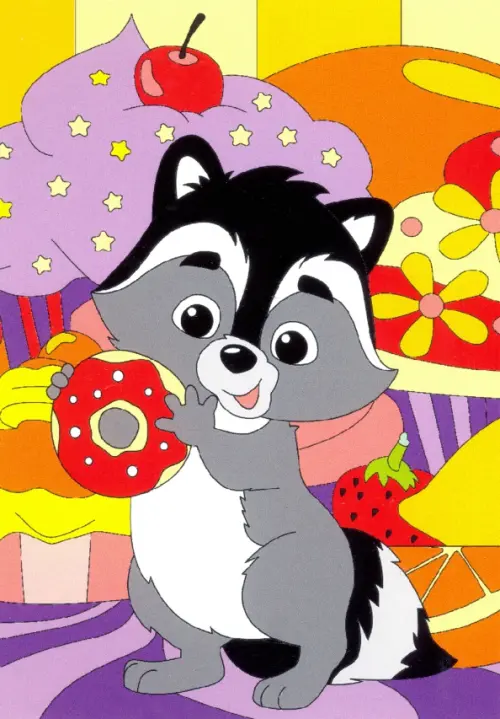 Написанная своими руками картина украсит интерьер или станет прекрасным подарком для родных и близких людей. Картина по номерам "Енот-сладкоежка" понравится и детям, и взрослым.