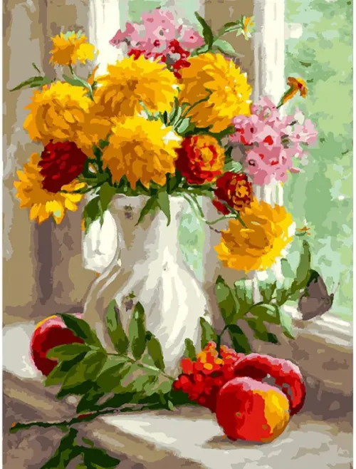 Основа картины - хлопковый холст, натянутый на деревянный подрамник. На холст нанесена схема, разделенная на области для закрашивания. Цифра внутри каждой области указывает на номер краски, которой необходимо закрасить данный участок. В комплект входят акриловые краски на водной основе, экологически безопасные, без запаха, быстросохнущие. Картина раскрашивается без смешивания красок. Набор комплектуется специальными кистями разного размера с искусственным ворсом для акриловых красок.