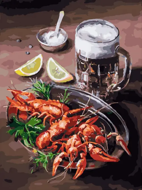 Живопись на холсте. Пиво и раки