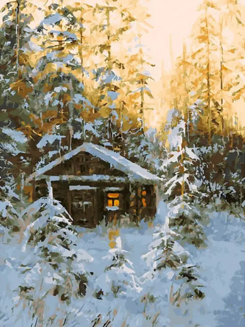 Мы рады предложить вам прекрасный зимний пейзаж с загадочным и таинственным зимним лесом, на опушке которого стоит маленькая охотничья избушка а из окошечка льется теплый свет. Этот необычный сюжет создан по мотивам картины от художника Ирины Поповой.