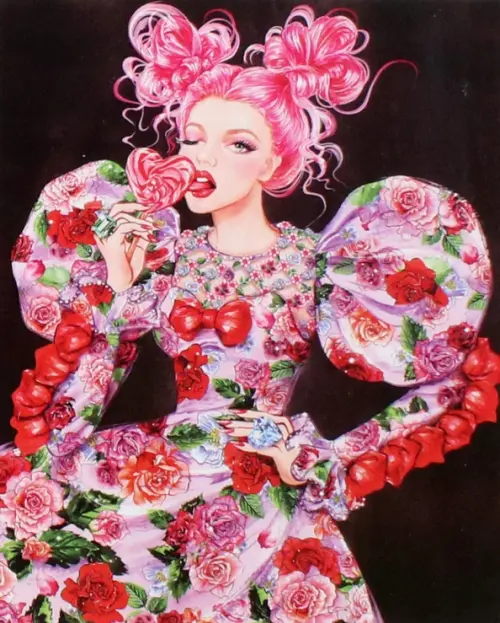 Автор картин Санни Гу, работает для модных журналов Vogue и Ellе. Ее творчество вдохновляют мировые модные имена, такие как Dolce&Gabbana, Chanel, Prada, Burberry, Bulgari и другие.