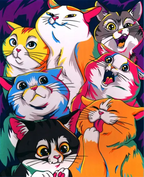 Картина по номерам на холсте Яркие котики