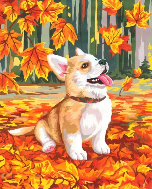 Картина по номерам на холсте с подрамником. Корги в осенней листве