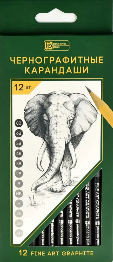 Твердость грифеля: 4H, 3H, 2H, H, HB, B, 2B, 3B, 4B, 5B, 6B, 8B