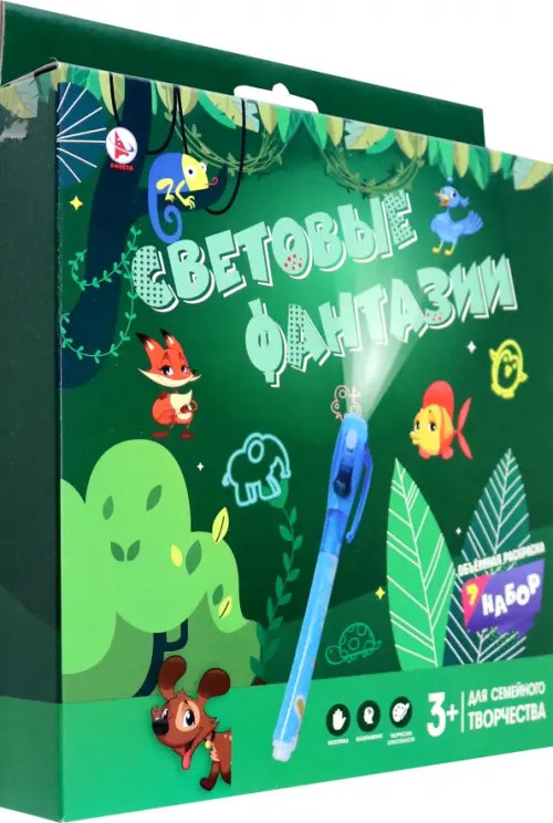 С набором "Световые фантазии" вы почувствуете себя настоящим волшебником, погрузившись в сказочный мир фантазий и чудес! Создавайте сюжеты и рисуйте картины, светящиеся в темноте, с помощью специального маркера и планшета.