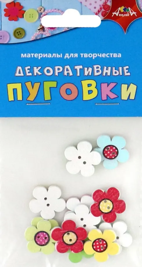 Материал для творчества и рукоделия Набор декоративных деревянных пуговиц. 10 фигурных пуговиц окрашенных водостойкой безопасной краской. Материал пуговиц - дерево. Отверстия в пуговицах позволяют продевать нитку, леску и тонкие шнуры.