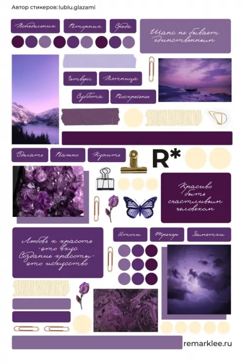 Это идеальный способ добавить в свою жизнь немного глубины и цвета. Он включает в себя 5 листов стикеров различных цветов, что позволит оформить недели на целый месяц. Каждый стикер содержит уникальный и гармоничный дизайн, который позволяет создать изящную атмосферу.