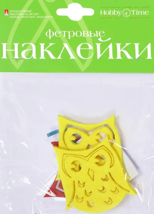 Декоративные наклейки из фетра. Веселые зверушки, в ассортименте