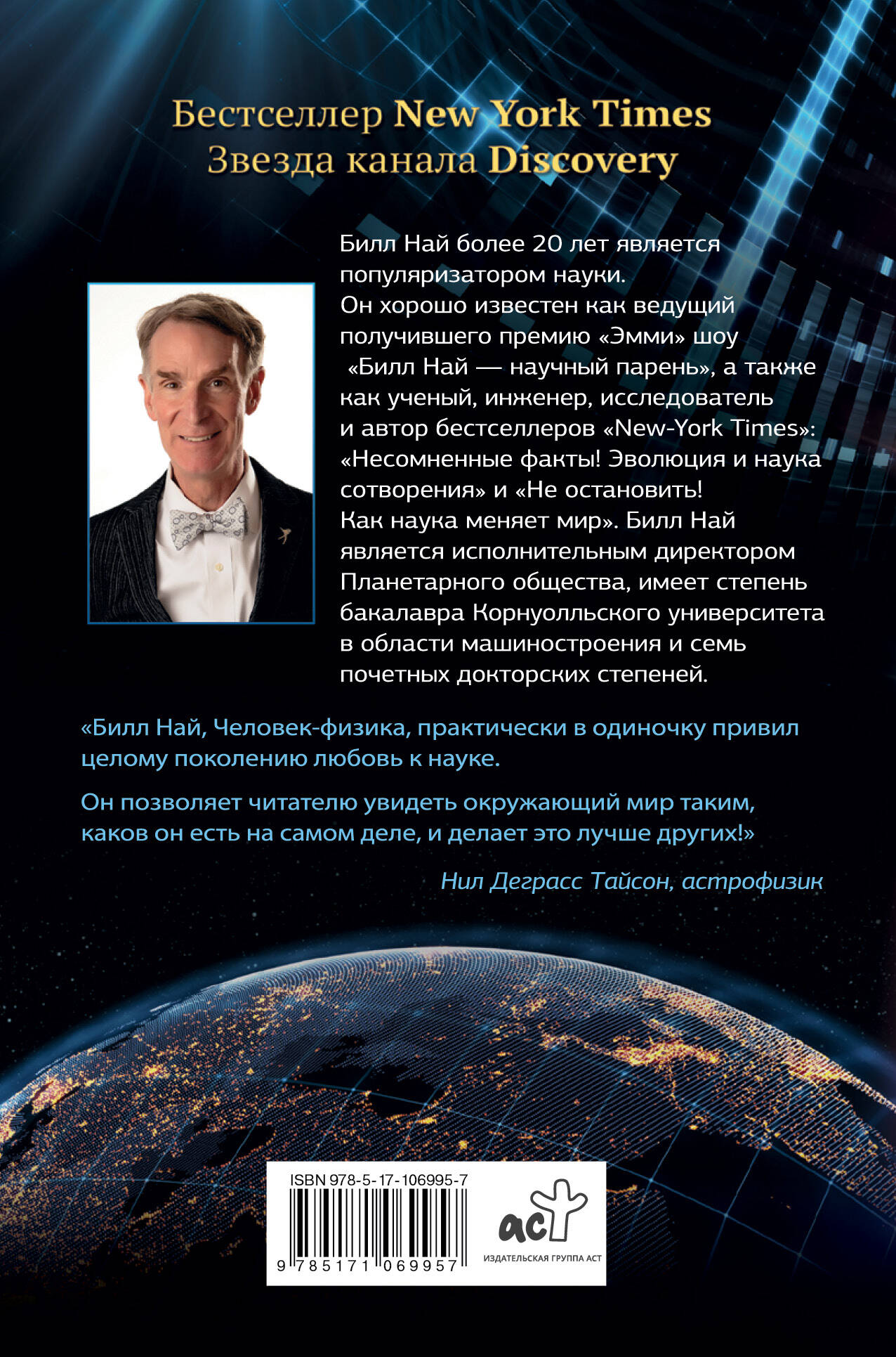 Знаменитый во всем мире популяризатор науки, ученый, инженер и популярный телеведущий канала Discovery, Билл Най совершил невероятное - привил любовь к физике всей Америке. На забавных примерах из собственной биографии, увлекательно и с невероятным чувством юмора он рассказывает о том, как наука может стать частью повседневной жизни, учит ориентироваться в море информации, правильно ее фильтровать и грамотно снимать "лапшу с ушей". Читатель узнает о планах по освоению Марса, проектировании "Боинга", о том, как выжить в автокатастрофе, о беспилотных автомобилях, гениальных изобретениях, тайнах логарифмической линейки и о других спорных, интересных или неразрешимых явлениях науки. "Человек-физика" Билл Най научит по-новому мыслить и по-новому смотреть на мир. Эта книга рассчитана на читателей всех возрастов, от школьников до пенсионеров, потому что ясность мысли - это модно и современно!