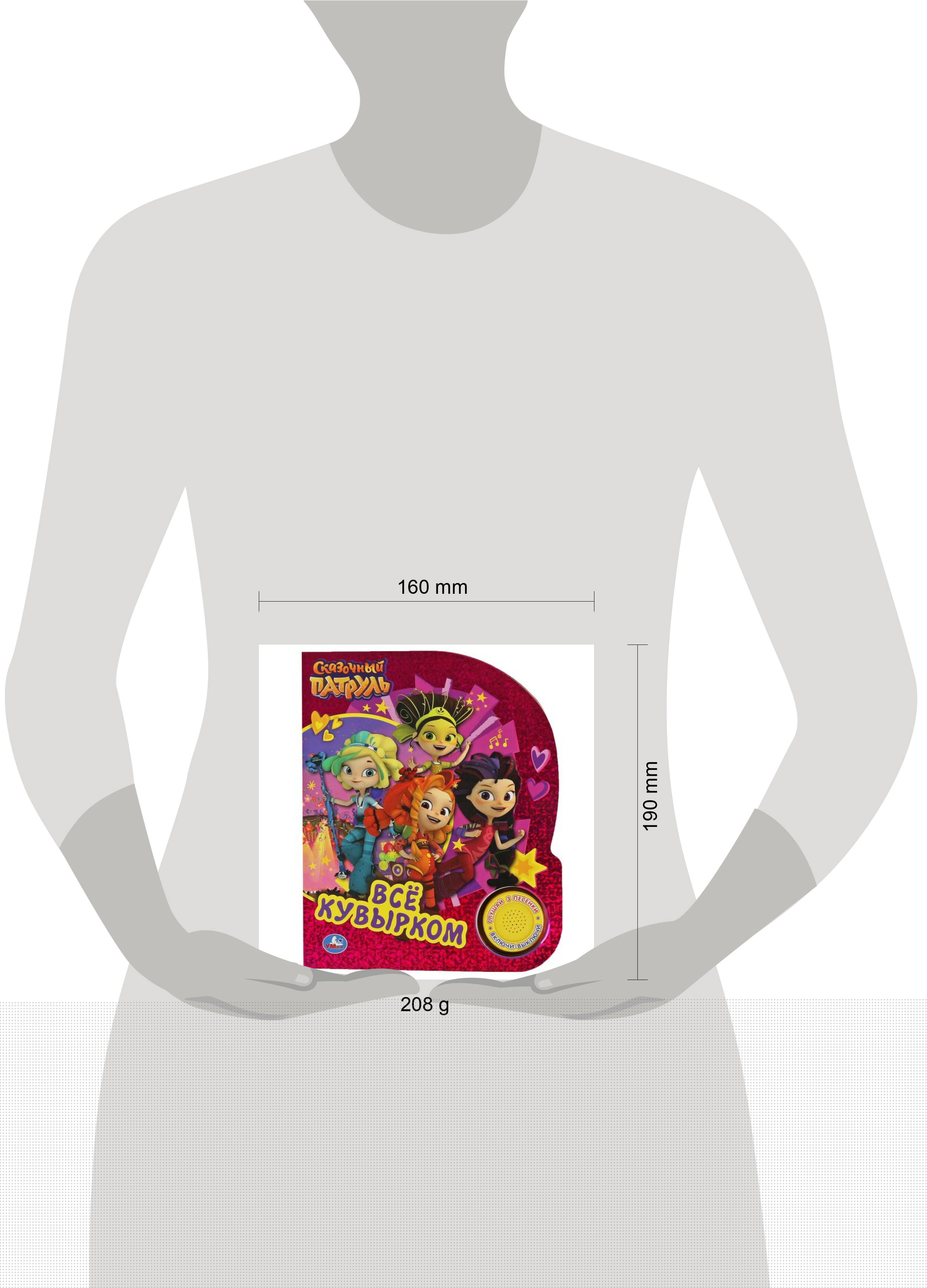 Музыкальная книга "Сказочный патруль. Всё кувырком" ТМ "УМка" - отличный подарок для маленьких поклонников мультсериала про юных волшебниц: - 1 звуковая кнопка - 3 песенки из м/ф (фрагменты): "Сказочный патруль", "Звезда", "Город Мышкин" - увлекательный сюжет - любимые герои - яркие иллюстрации - удобный формат Ребёнок с удовольствием будет листать плотные картонные страницы, рассматривать красочные картинки, читать вместе с родителями про приключения любимых персонажей, а также нажимать на кнопку и слушать весёлые песенки. Малыш легко освоит включение звука: при нажатии на кнопку включится первая песенка, при втором нажатии выключится, в 3-ий раз - заиграет следующая и т.д. Благодаря компактному формату книгу удобно взять с собой в дорогу. Чтение музыкальной книги ТМ "УМка" и игра с ней развивают: - слуховое восприятие - мелкую моторику - фантазию - образное мышление - память Объём: 8 стр. Формат: 152 х 185 мм. Материал: пластмасса + картон. Работает от 3-х батареек типа LR1130 (в комплекте). Рекомендовано детям старшего дошкольного возраста.| Издательство | С-Маркет ООО |