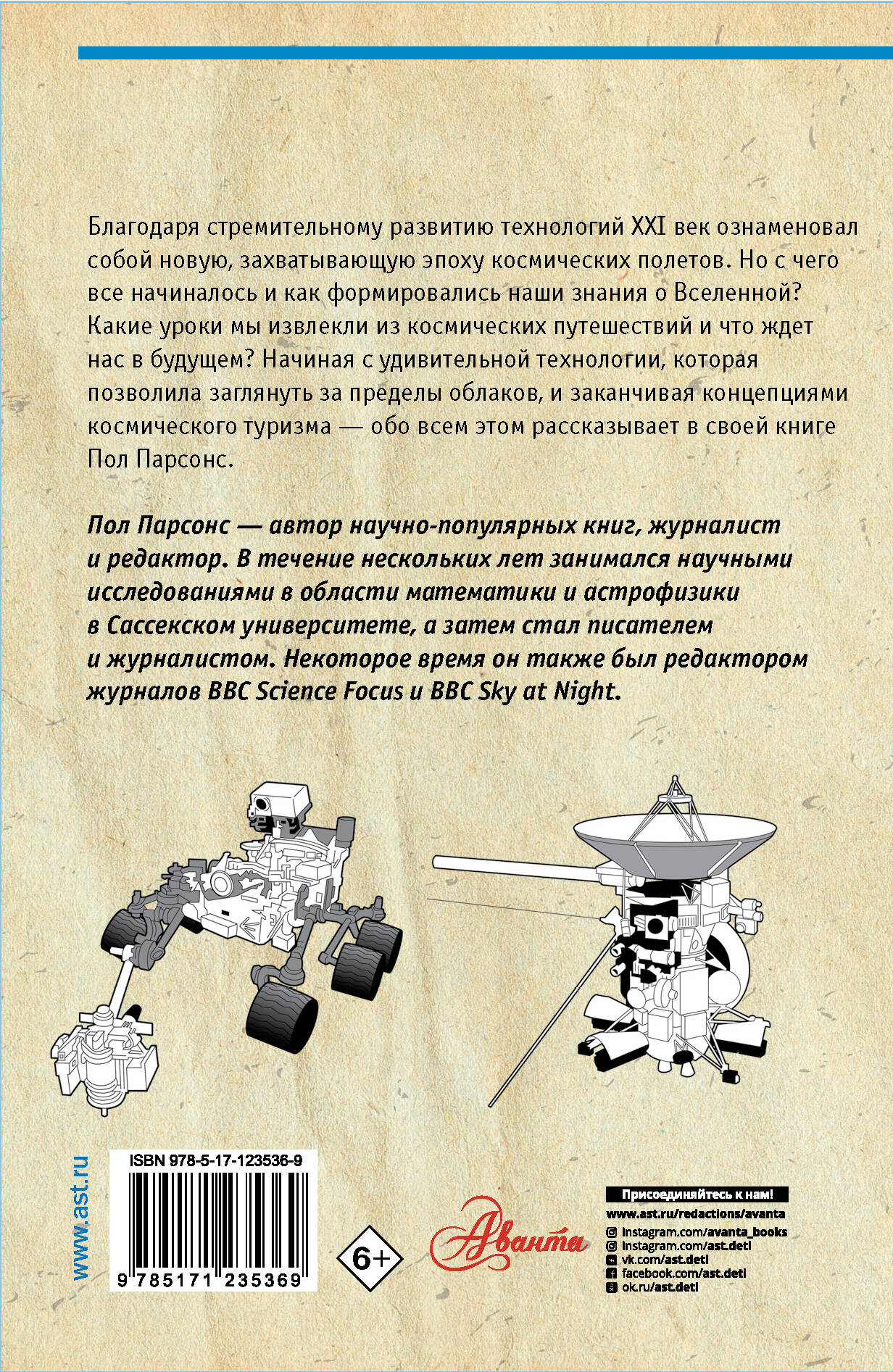 Благодаря стремительному развитию технологий XXI век ознаменовал собой новую, захватывающую эпоху космических полетов. Но с чего все начиналось и как формировались наши знания о Вселенной? Какие уроки мы извлекли из космических путешествий и что ждет нас в будущем? Начиная с удивительной технологии, которая позволила заглянуть за пределы облаков, и заканчивая концепциями космического туризма - обо всем этом рассказывает в своей книге Пол Парсонс. Пол Парсонс - автор научно-популярных книг, журналист и редактор. В течение нескольких лет занимался научными исследованиями в области математики и астрофизики в Сассекском университете, а затем стал писателем и журналистом. Некоторое время он также был редактором журналов BBC Science Focus и BBC Sky at Night.| Издательство | ИЗДАТЕЛЬСТВО "АСТ" |