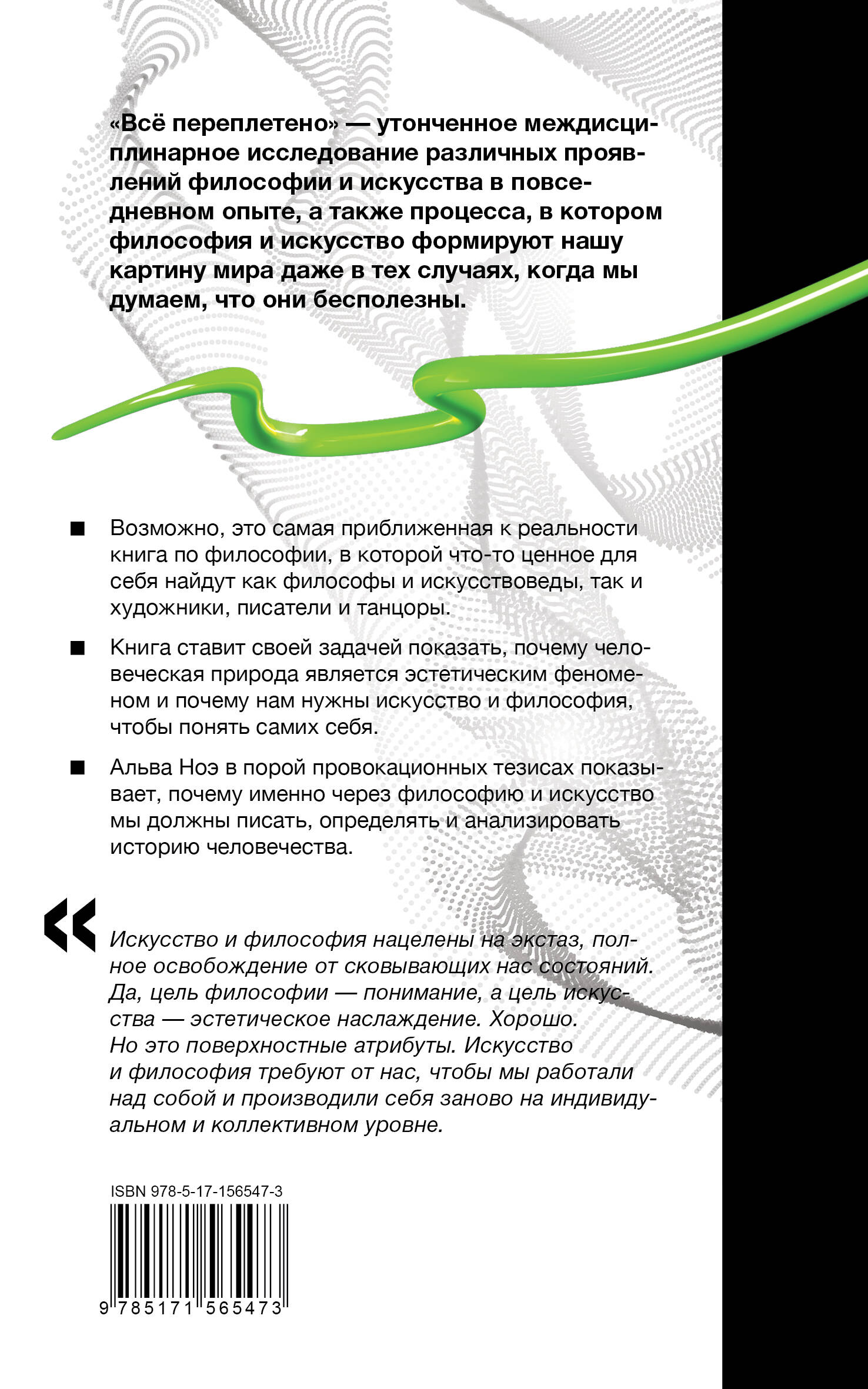 "Всё переплетено" - утонченное междисциплинарное исследование, задача которого показать, почему человеческая природа является эстетическим феноменом и почему нам нужны искусство и философия, чтобы понять самих себя. Возможно, это самая приближенная к реальности книга по философии, в которой что-то ценное для себя найдут как философы и искусствоведы, так и художники, писатели и танцоры. Философ Альва Ноэ в порой провокационных тезисах показывает, почему именно через философию и искусство мы должны писать, определять и анализировать историю человечества.| Издательство | ИЗДАТЕЛЬСТВО "АСТ" |