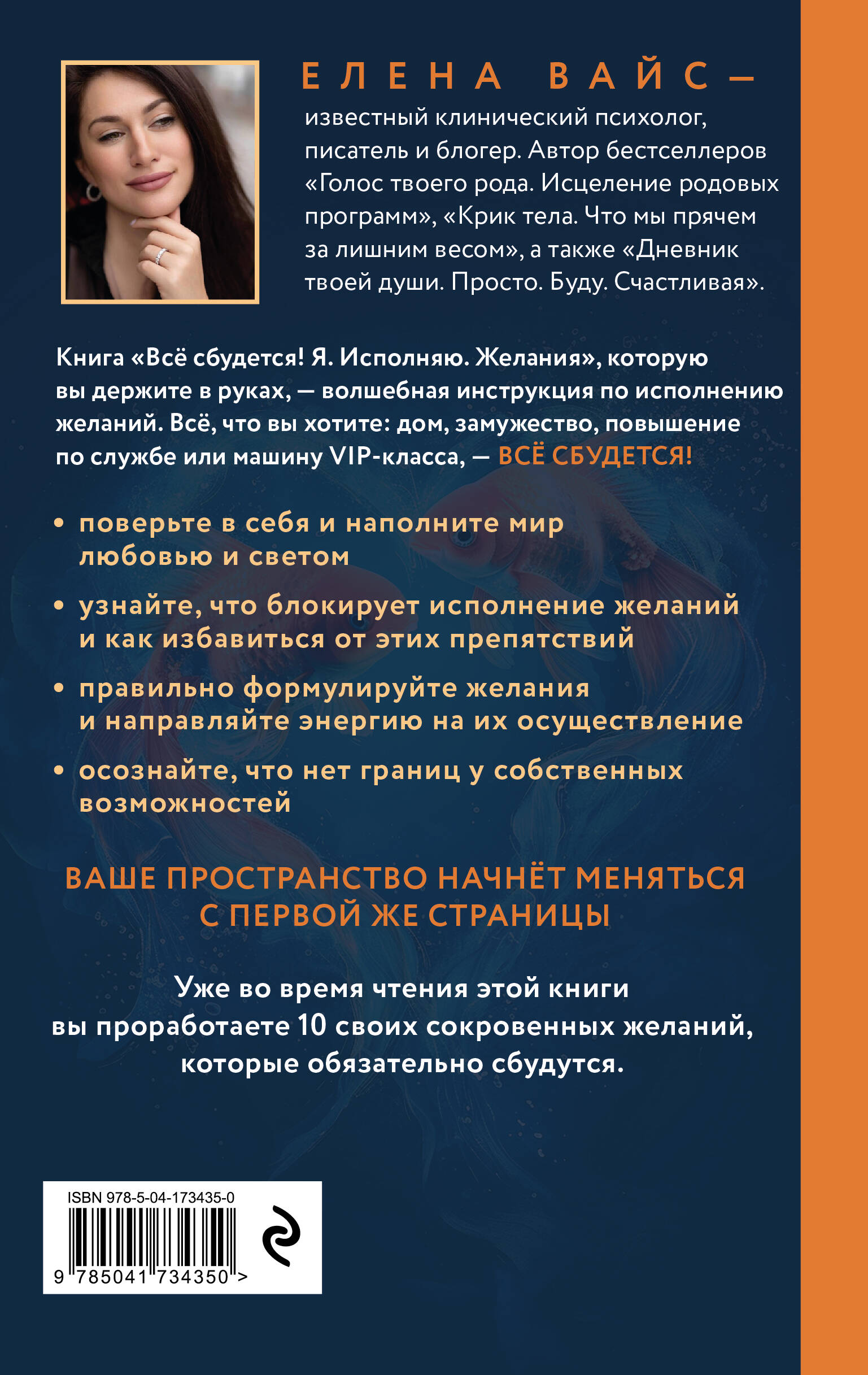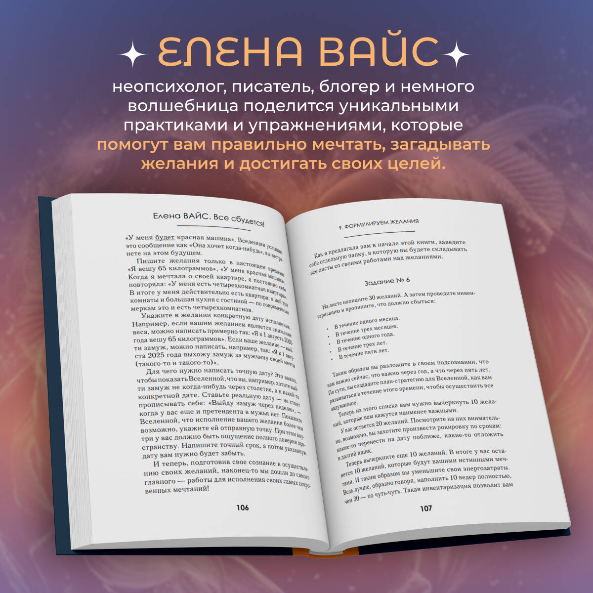 Как правильно мечтать? Как загадать желание, чтобы оно исполнилось? Что блокирует исполнение желаний? На эти и другие вопросы Елена Вайс - практикующий клинический психолог и немного волшебница - отвечает в своей книге, предлагая читателям уникальные практики и упражнения. Что такое механизм исполнения желаний? Вся эта магия построена не на том, чтобы взмахом волшебной палочки «наколдовать» себе прекрасного принца. Все это не имеет отношения к магическому мышлению. Магическое мышление - это способность быстро материализовывать свою мысль! Оно заключается в умении правильно формулировать, отправлять запрос во Вселенную и правильно вкладывать энергию для реализации этой мысли. Ведь вы - частичка Бога. И вы можете формировать свою реальность! Эта книга предназначена для того, чтобы изменить сознание. Как только оно начнет меняться, изменится и реальность - мир станет счастливей, полноценней, богаче!| Издательство | ООО "Издательство "Эксмо" |