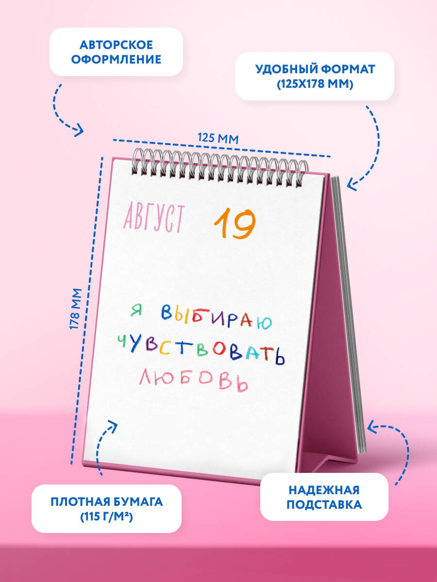 Стиль, который точно видел каждый, от автора популярного канала «Твоя личная юность» (более 100 000 подписчиков). Поверь, исполнение мечты - это не чудо, а результат правильного мышления. Всё начинается с мысли. А всё остальное - обязательно придёт. Календарь - это ваш ежедневный источник доброты, поддержки и веры в лучшее. Начинайте каждое утро с вдохновляющей мысли, тёплого напутствия или мудрой фразы - и пусть день начинается с улыбки. Почему этот календарь особенный: - 366 дней поддержки - цитаты, которые согревают и мотивируют. - Стильный дизайн - украсит рабочий стол и создаст хорошее настроение. - Вечный формат - можно использовать год за годом. - Авторский контент - лучшие фразы от популярного позитивного канала. - Все фразы отобраны с любовью. Преимущества: - Удобный формат (125х178 мм) - поместится на рабочем столе или тумбочке. - Вечный формат - рассчитан на 366 дней и будет актуален каждый год. - Плотная бумага (115 г/м²) - приятная на ощупь, подходит для заметок карандашом или ручкой. - Подставка в комплекте - для красивого размещения на столе. Пусть каждый ваш день начинается с веры: действительно, год за годом, день за днём всё будет хорошо, потому, что всё уже хорошо!| Издательство | ООО "Издательство "Эксмо" |