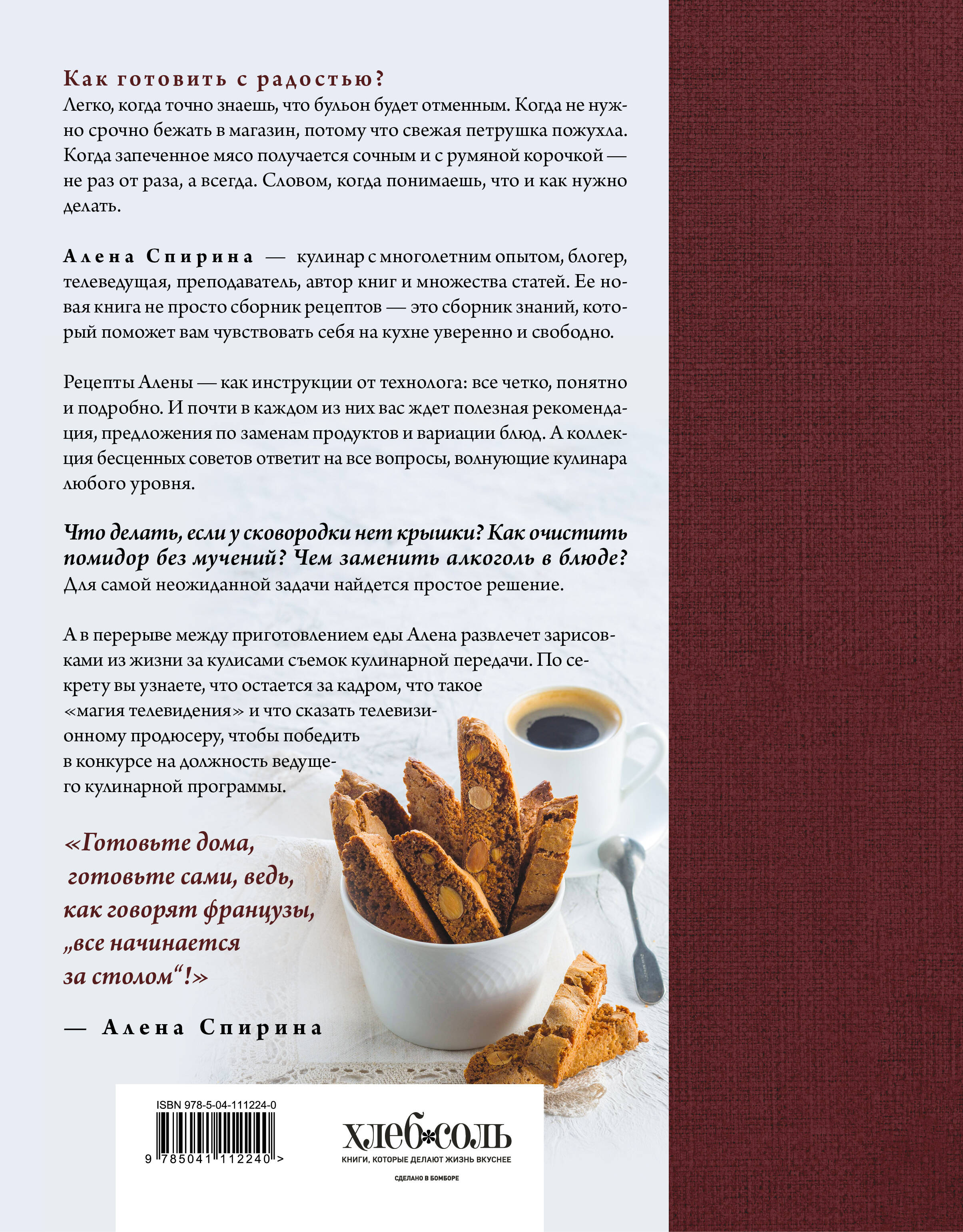 Простая, понятная, щедрая на рецепты - новая книга Алены Спириной как приглашение на кухню, где пахнет пирогами и ароматным супом. Это более 150 блюд для всей семьи: от сезонных салатов и наваристых супов до домашней выпечки, десертов и уютных напитков. Каждое блюдо - это личный выбор автора, что она готовила десятки раз и советует от чистого сердца. Книга подойдет и начинающим, и тем, кто давно на «ты» с кастрюлями: рецепты подробно описаны, сопровождаются фотографиями и дополнены маленькими хитростями, которые делают готовку проще и радостнее. Что внутри: - Закуски, салаты, соусы, паштеты. - Супы: от классического борща до французского лукового. - Основные блюда из мяса, рыбы, овощей и круп. - Домашняя выпечка, пироги, сырники, самса, куличи. - Десерты и сладости: панна-котта, мусс, печенье, торты. - Напитки: морсы, сорбеты, кофе по-гречески, пряный сидр. - И главное - бесценные советы: как сохранить зелень, чем заменить ингредиенты, что делать, если нет крышки от кастрюли, и как печь без стресса. Эта книга - не просто про рецепты. Она про жизнь. Про радость готовить дома. Про то, как понимать то, что делаешь. Подарите ее себе или тем, кого любите - и готовьте с удовольствием.| Издательство | ООО "Издательство "Эксмо" |