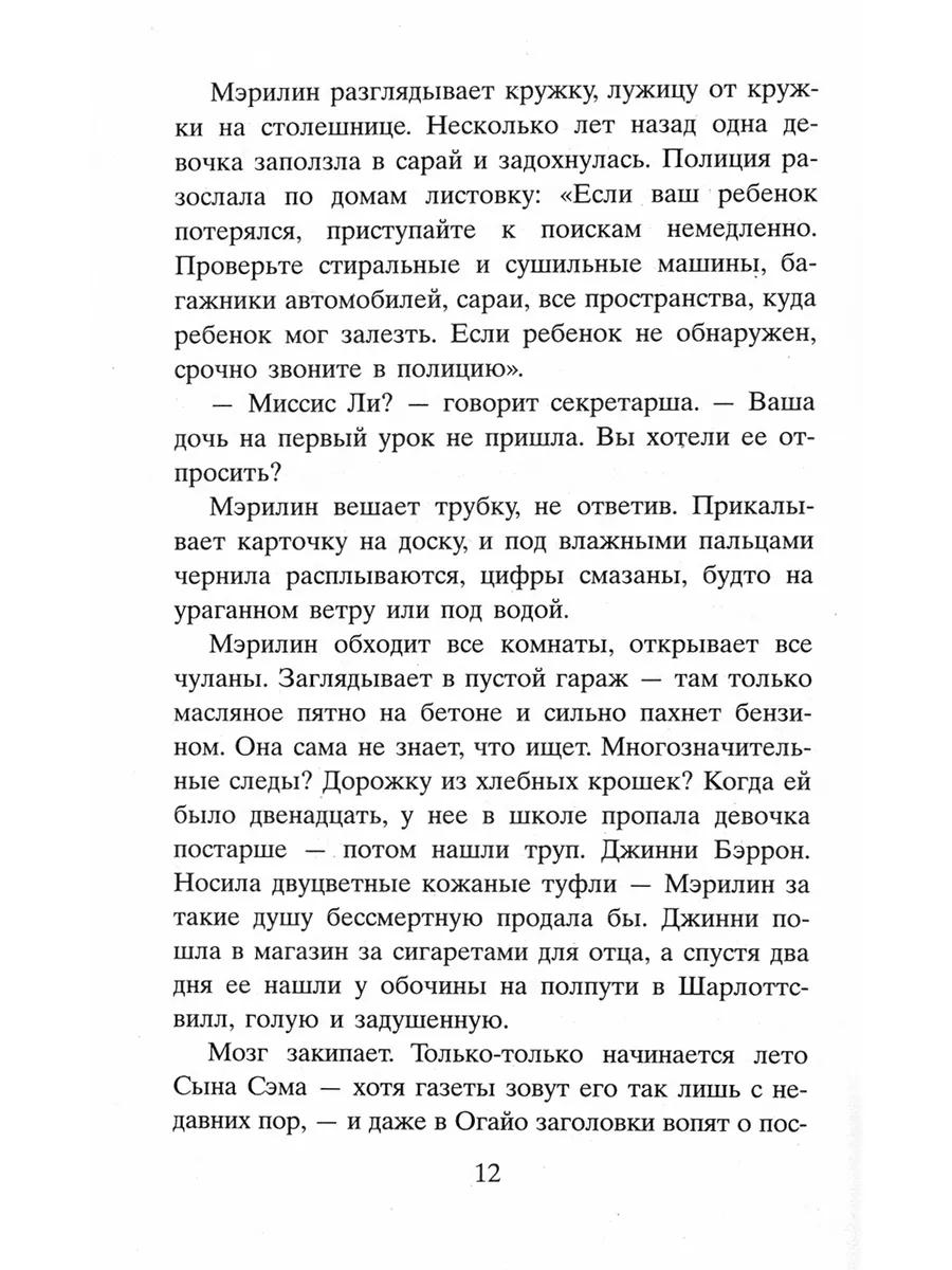 «Лидия мертва. Но они пока не знают...» Так начинается история очередной Лоры Палмер - семейная история ложных надежд и умолчания. С Лидией связывали столько надежд: она станет врачом, а не домохозяйкой, она вырвется из уютного, но душного мирка. Но когда с Лидией происходит трагедия, тонкий канат, на котором балансировала ее семья, рвется, и все, давние и не очень, секреты оказываются выпущены на волю. «Все, чего я не сказала» - история о лжи во спасение, которая не перестает быть ложью. О том, как травмированные родители невольно травмируют своих детей. О том, что родители способны сделать со своими детьми из любви и лучших побуждений. И о том, наконец, что порой молчание убивает. Роман Селесты Инг - одна из самых заметных книг последних двух лет в англоязычной литературе. Дебют, который критики называют не иначе как «ошеломительный», проча молодой писательнице большое будущее.| Издательство | Фантом Пресс |