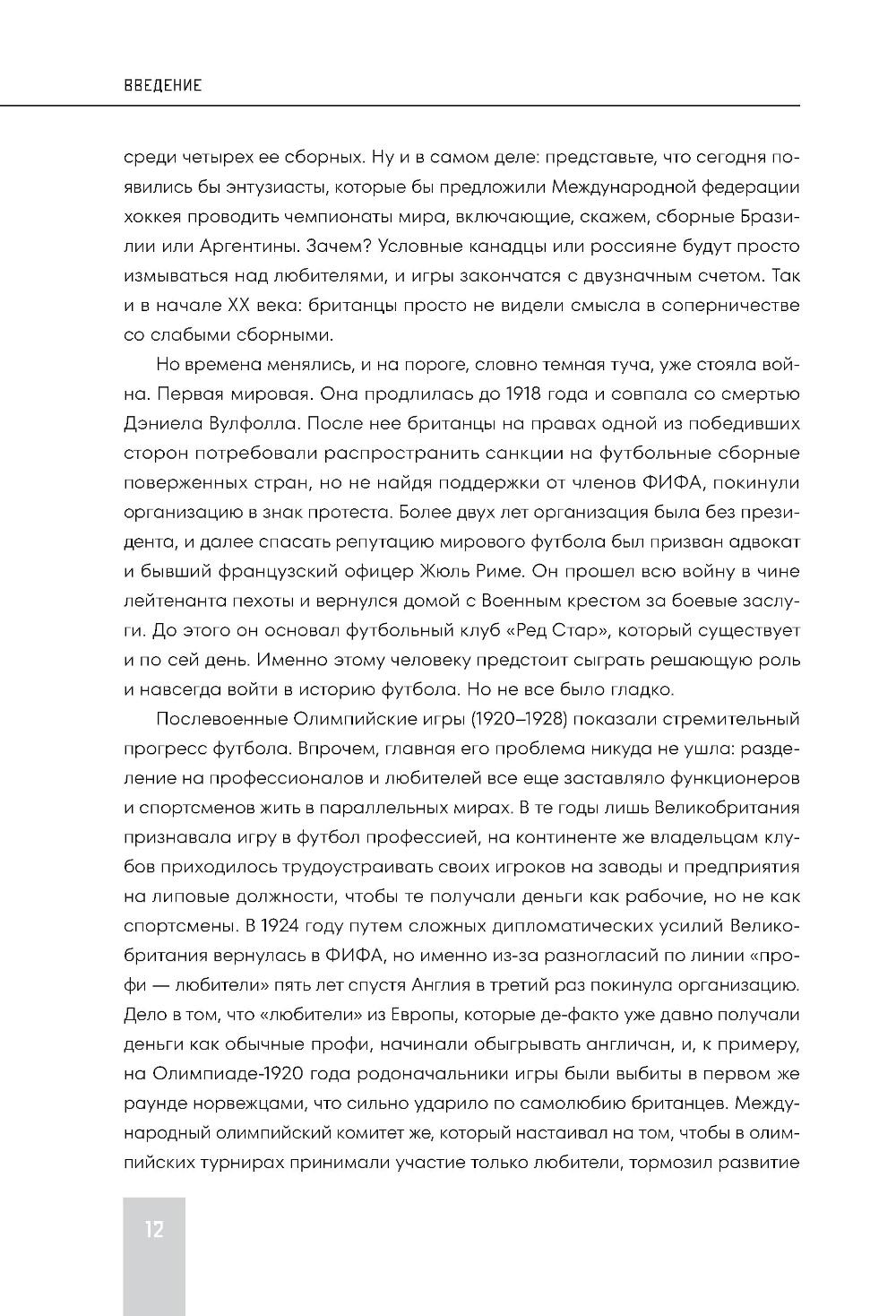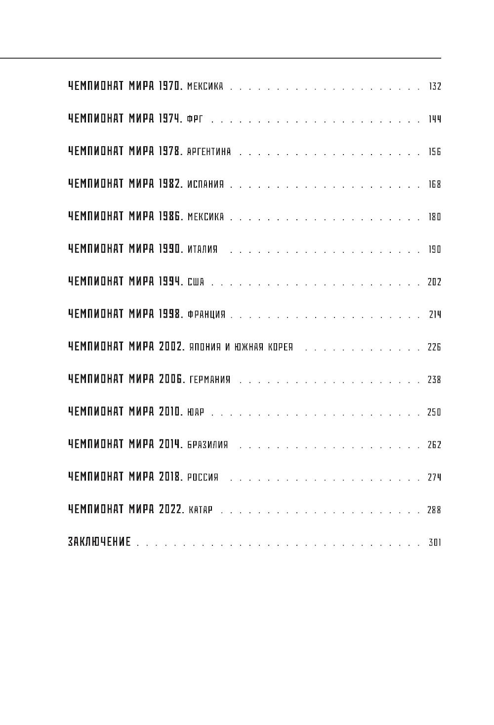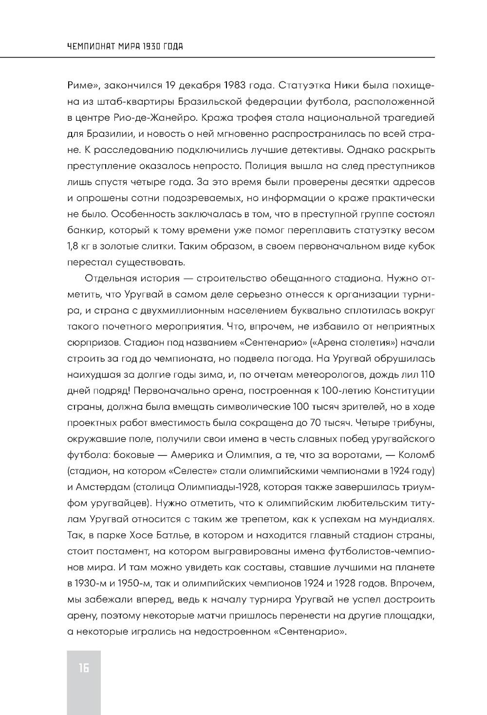 С 1930 года чемпионаты мира становятся сценой, где сталкиваются не только команды, но и характеры, культуры и целые эпохи! Здесь маленькие страны обыгрывают титанов, великие имена рождаются прямо на глазах миллионов, а один гол может изменить ход истории. Отправляйтесь в путешествие по всем мундиалям - от первого турнира в Уругвае 1930 года, когда зарождалась новая футбольная история, до блистательного шоу в Катаре 2022-го, где Лионель Месси спустя 17 лет после своего дебюта за сборную Аргентины поднял долгожданный Кубок мира.| Издательство | Эксмо |