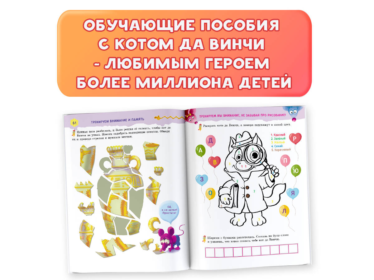 Аннотация: Все, что должен знать будущий первоклассник. Занимаемся с котом да Винчи