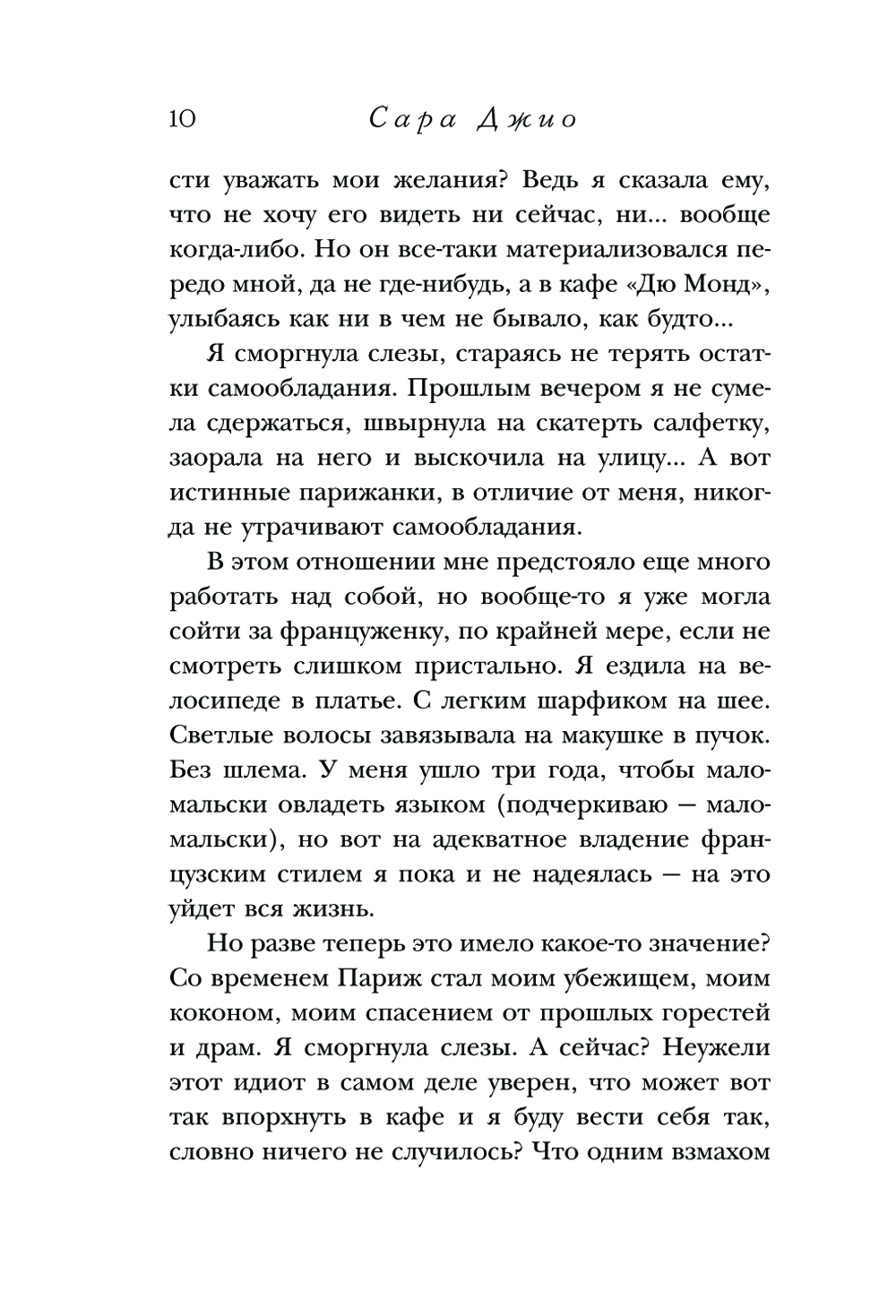 Каролина Уильямс, дочь известного киноактера, после частичной потери памяти приезжает в Париж и арендует квартиру на улице Клер. Вскоре она понимает, что красивый старинный дом хранит тайну. Каролина обнаруживает в одной из комнат письма некой Селины, датированные 1943 годом. Селину удерживали в доме насильно, но она не теряла присутствия духа и делала все, чтобы спасти своих любимых, особенно малышку дочь. Разбираясь с загадками, корни которых уходят более чем на полвека в прошлое, Каролина находит ключи и к собственной памяти, в глубинах которой притаились и боль, и вера, и любовь.| Издательство | Эксмо |