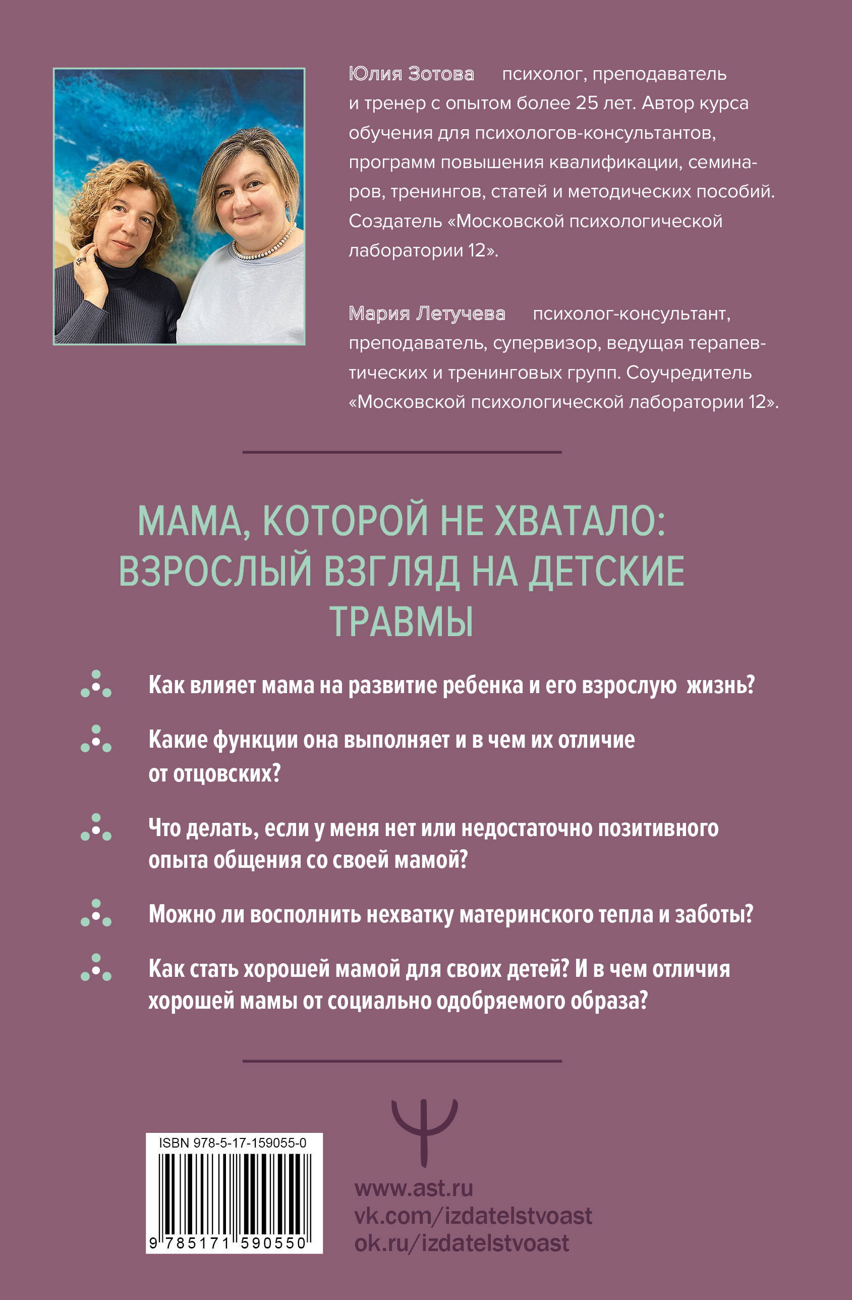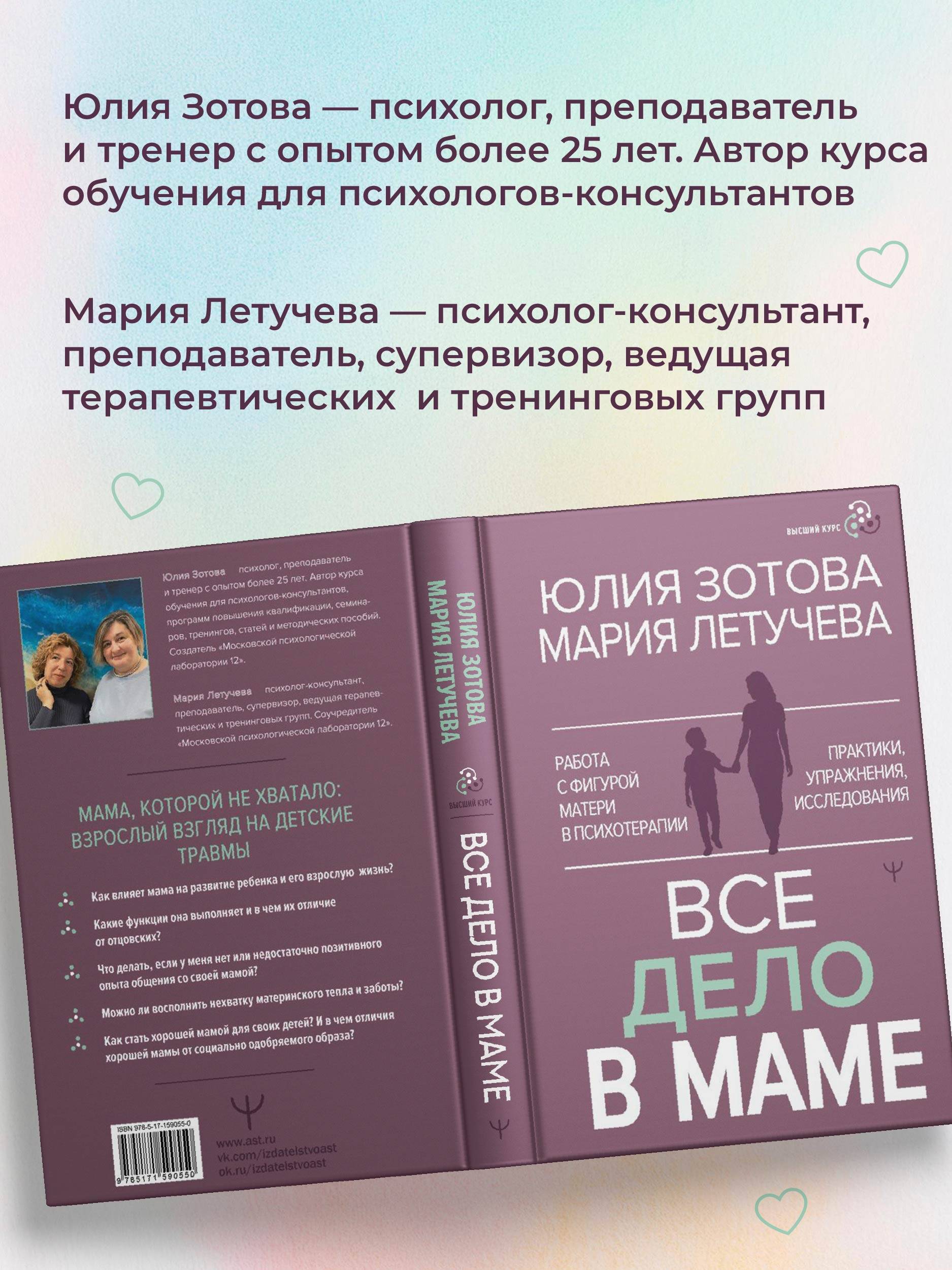 Отношения с мамой особым образом определяют всю жизнь человека. От того, как они сложились, зависит наша самооценка, а также понимание безопасности, свободы, доверия. Но что делать, если позитивного взаимодействия с мамой нет и не было? Можно ли компенсировать недостаток материнского тепла и заботы? Как преодолеть пласт иллюзий и мифов о "хорошей матери" и выстроить уже со своими детьми отношения, полные тепла и любви? Опытные психологи-практики, авторы популярной книги "Все дело в папе" Юлия Зотова и Мария Летучева рассмотрят тему материнства с позиции детей, родителей и профессиональных психологов. Вы узнаете, как мама влияет на ребенка на каждом этапе детско-родительских отношений, каковы базовые функции матери и чем они отличаются от отцовских. А главное - как работать с последствиями недостатка материнского общения и внимания. В тексте даны терапевтические практики для работы с фигурой матери, с их помощью вы сможете восстановить связь с мамой, проработать старые травмы и создать условия для собственного счастливого материнства. Упражнения будут полезны как для самостоятельной работы, так и профессиональной деятельности педагогов, психологов и психотерапевтов. С помощью этой книги вы узнаете: · как проработать негативный опыт общения с матерью; · как восполнить дефицит материнского внимания; · чем хорошая мама отличается от социально одобряемого образа; · как стать заботливой и любящей мамой для своих детей. Книга в твердой обложке.| Издательство | Издательство "АСТ" |