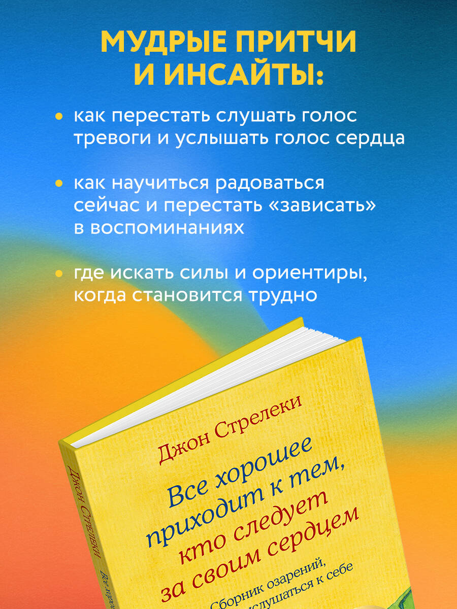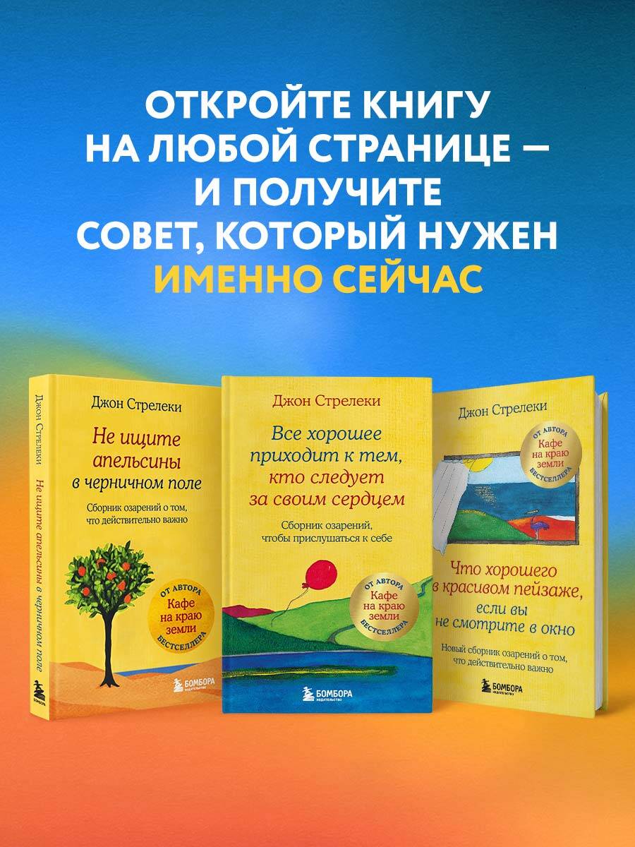 Новая книга из серии «Кафе на краю земли» понравится всем ценителям философии Джона Стрелеки. Это третья часть книг с мудрыми озарениями автора, которые могут стать вашей ежедневной поддержкой. В отличие от первых двух книг, «Не ищите апельсины в черничном поле» и «Что хорошего в красивом пейзаже, если вы не смотрите в окно», в этой вы найдете истории, похожие на притчи. Как читать эту книгу? Откройте ее на любой странице и позвольте себе прислушаться не только к мыслям автора, но и к тому, что говорит ваше собственное сердце. Возможно, то, что вы прочитаете, станет для вас тем самым «озарением», которое вы искали. Из этой книги вы узнаете: - как начать слушать свое сердце и зачем это делать; - как получать радость от каждого прожитого дня; - где искать силы, когда становится трудно.| Издательство | ООО "Издательство "Эксмо" |