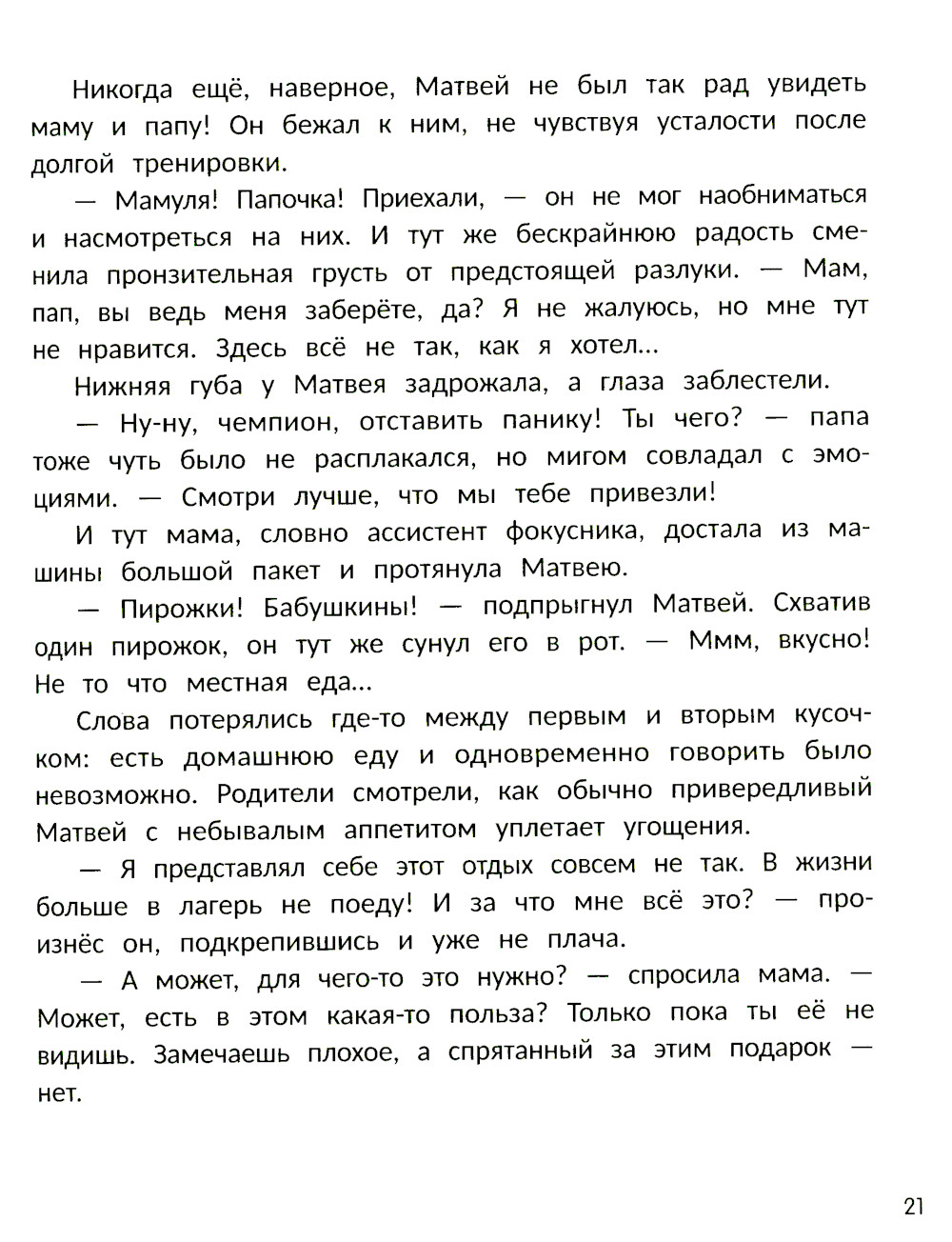 Если всё происходит не так, как тебе хочется, если жизнь подкидывает совсем не те сюрпризы, о которых ты мечтал, то знай: возможно, за ними скрывается неожиданный подарок. И на самом деле всё к лучшему! «Да нет, не может быть!» - думал Матвей, у которого всё складывалось не так, как он представлял. И даже поездка в спортивный лагерь грозила стать худшим событием, которое с ним произошло. Но сколько же новых возможностей открылось перед мальчиком, сколько впечатлений он получил! Добрая история, которая вдохновит, научит верить в себя и доверять жизни, что бы ни происходило. История, которая докажет, что всё всегда к лучшему!| Издательство | Феникс |