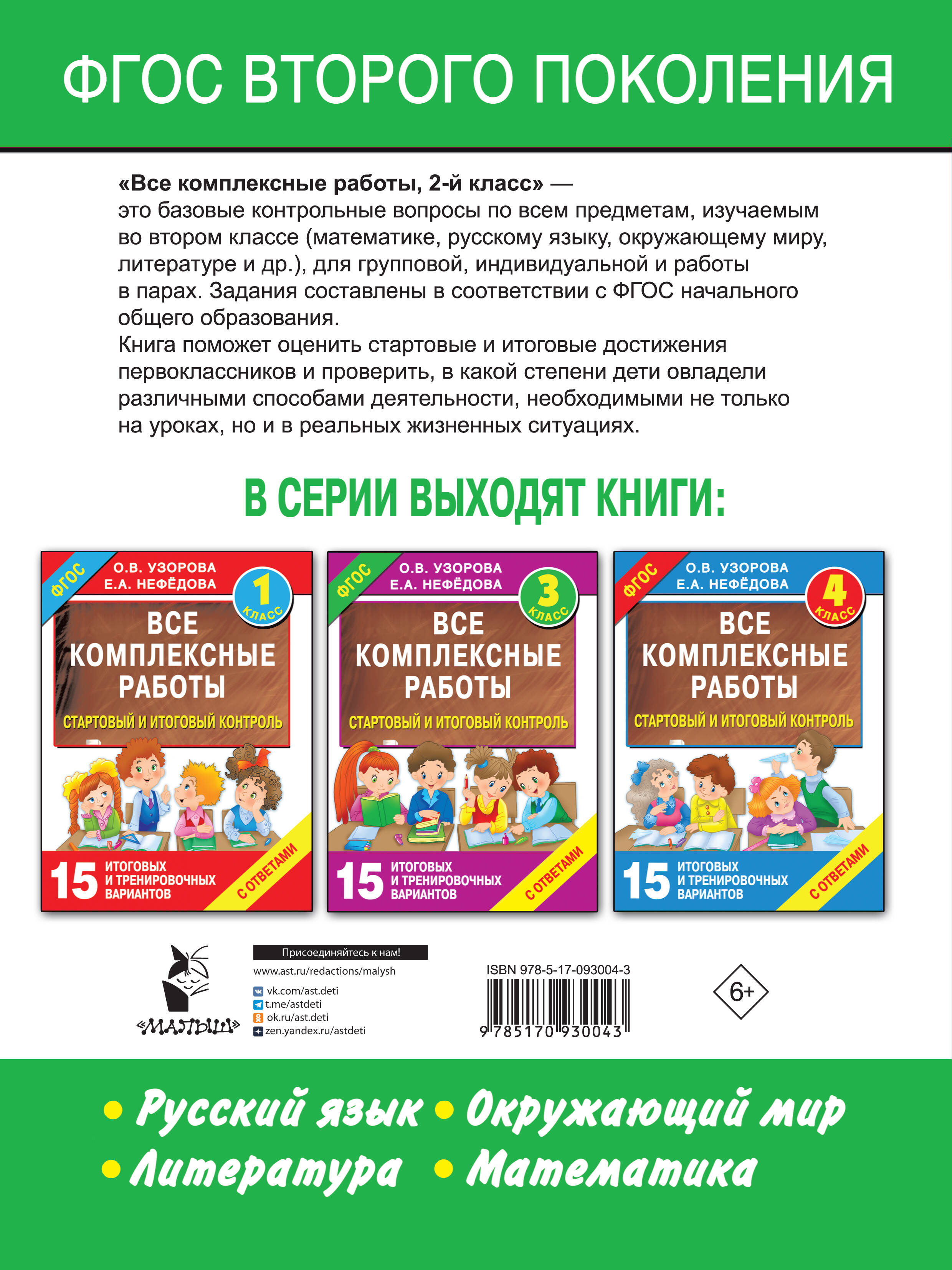Аннотация: Все комплексные работы. Стартовый и итоговый контроль с ответами. 2-й класс