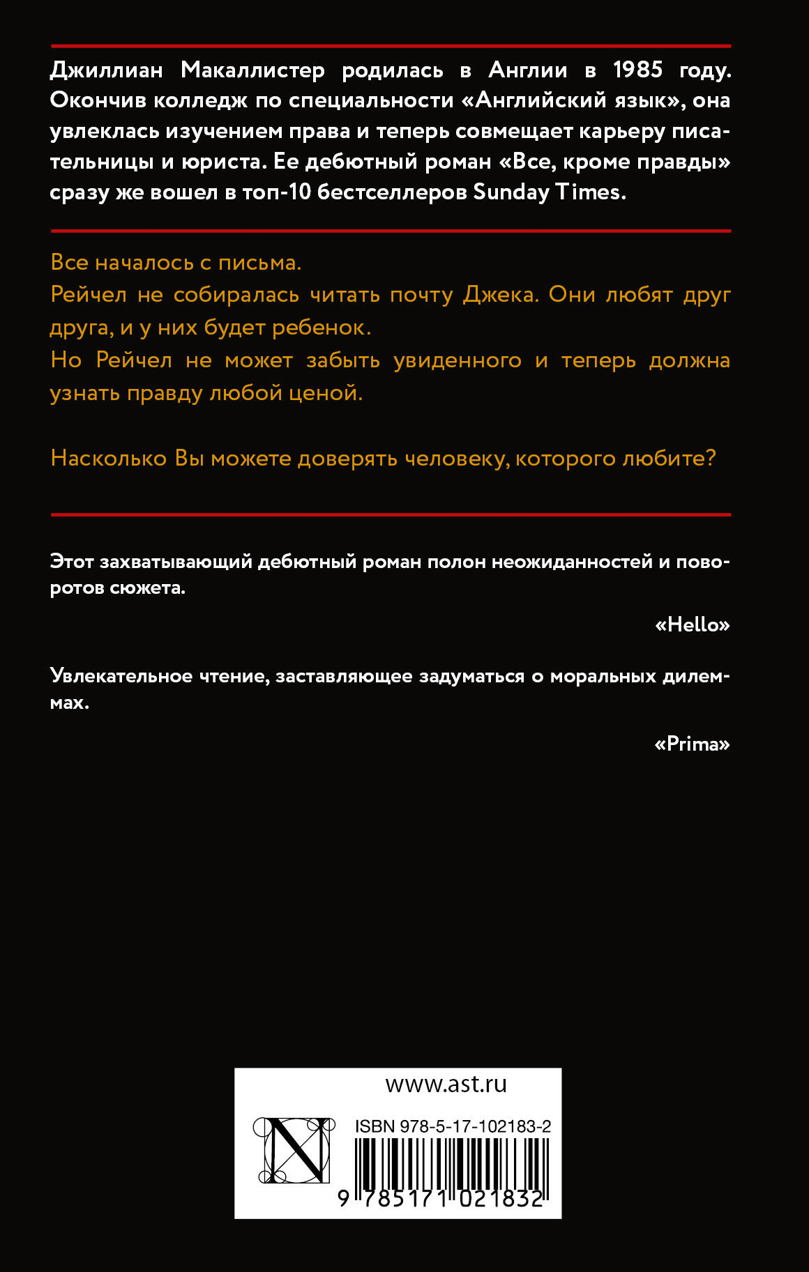 Все началось с письма. Рейчел не собиралась читать почту Джека. Они любят друг друга, и у них будет ребенок. Но Рейчел не может забыть увиденного и теперь должна узнать правду любой ценой. Насколько Вы можете доверять человеку, которого любите?