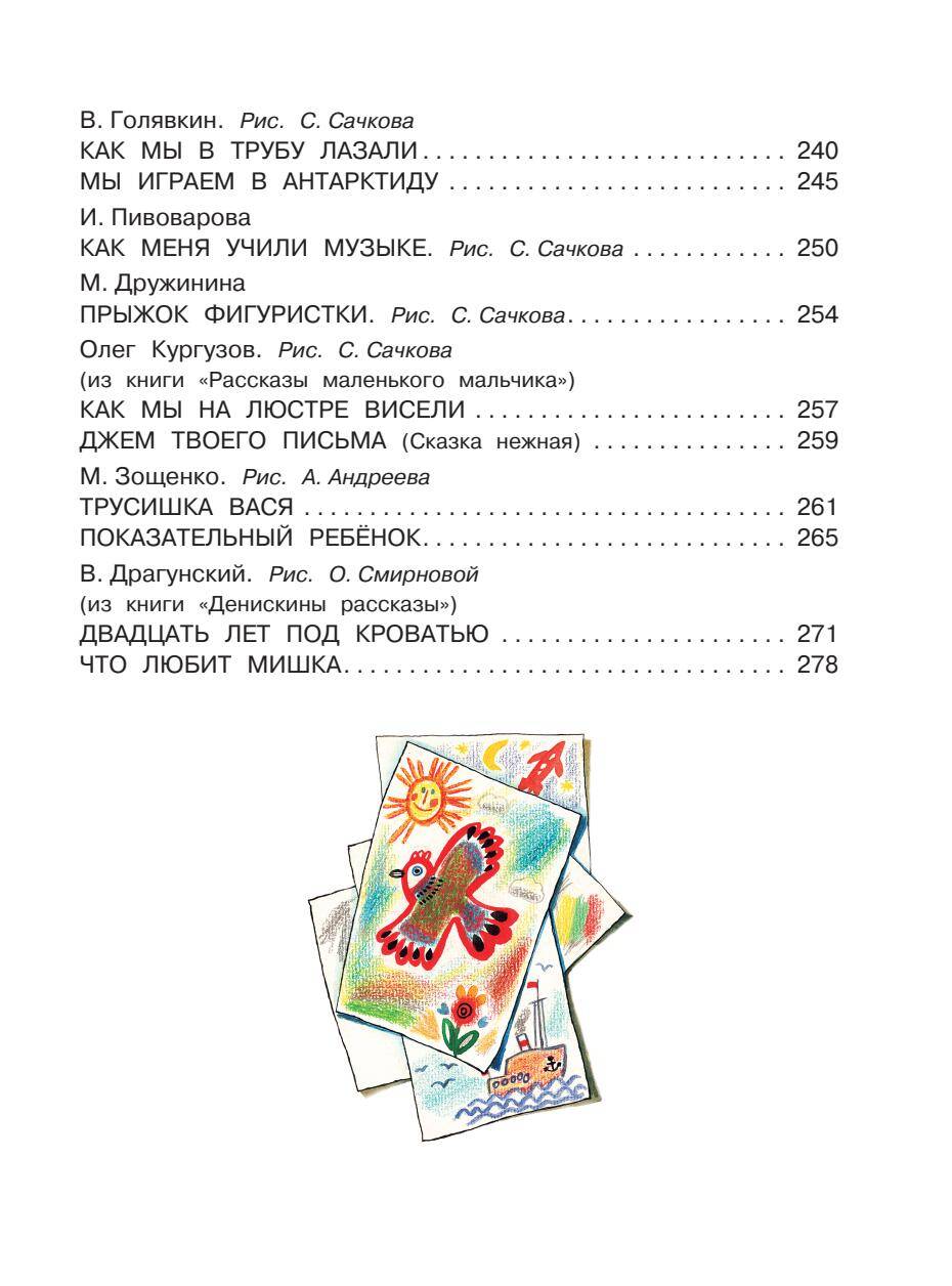 В книгу вошли классические рассказы Э. Успенского, С. Маршака, С. Михалкова, М. Зощенко и других классиков детской литературы. Светлые, добрые истории на разные темы, доступные для детей как младшего, так и среднего дошкольного возраста. Из книги ребёнок узнает: • о животных: их смекалке, преданности, желании быть любимыми, благодарности за хорошее к ним отношение; • о природе и временах года из уст птиц и зверей: «десять месяцев - столько, сколько у людей пальцев на передних лапах: февраль, март, апрель, май, июнь, июль, август, сентябрь, октябрь, ноябрь»; • о своих ровесниках, которые играют, проказничают, дружат и попадают в ситуации, которые заставляют их по-новому взглянуть на окружающие вещи; Волшебные иллюстрации от известных художников Э. Булатова, О. Васильева, В, Чижикова. Книга подходит для семейного чтения.| Издательство | ИЗДАТЕЛЬСТВО "АСТ" |