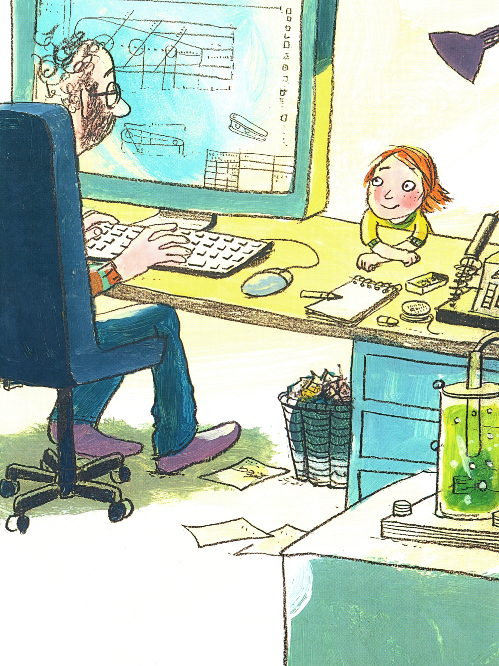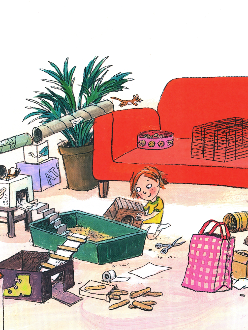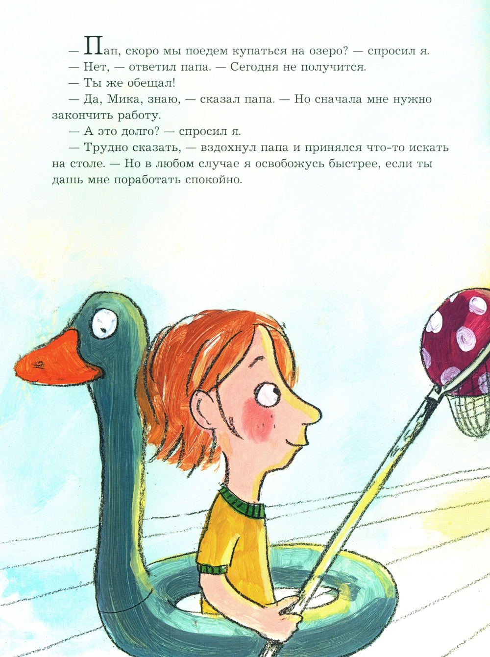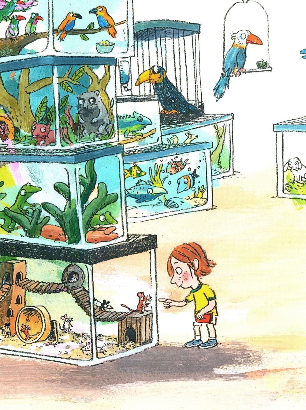 Папа очень занят: он работает над важным проектом. А поскольку работает он из дома, то просит своего сына Мику не отвлекать его. Но Мике скучно ? ведь он ребёнок и ему хочется с кем-то поиграть. Мика просит разрешения завести себе домашнее животное, чтобы было с кем провести время, пока папа занят. Немного подумав, папа даёт Мике своё согласие и кошелёк, с которым мальчик отправляется в зоомагазин. Там Мика покупает себе мышку-песчанку. И они отлично играют в прятки по всей гостиной. Правда, потом мышка прячется так хорошо, что Мика снова идёт в зоомагазин и на этот раз возвращается со щенком, потому что у собак отличный нюх, и они могут отыскать кого угодно. Ну а дальше… дальше Мике пришлось сбегать в зоомагазин ещё несколько раз. И вот, когда к воскресенью папа, наконец, закончил свой важный проект и огляделся по сторонам, он обнаружил, что за столом на кухне сидит и завтракает большая дружная компания: Мика с мышкой-песчанкой, щенок, тюлень, пингвин, попугай и слонёнок.
