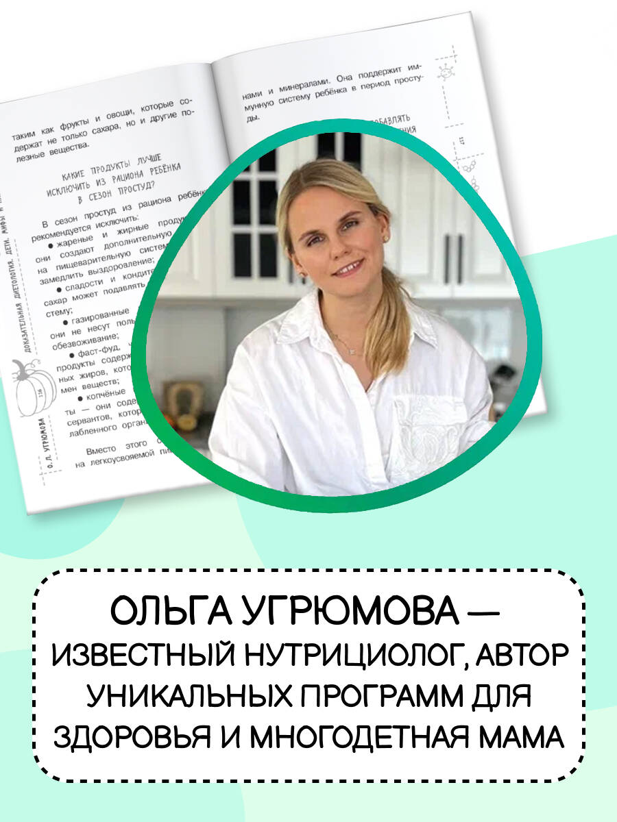 Крепкое здоровье ребенка во многом зависит от его питания. В этой книге собраны все необходимые темы о питании детей от первых дней жизни и до подросткового возраста. Какие продукты влияют на качество грудного молока? Что подходит для первого прикорма? Какие продукты поддерживают иммунитет при разных заболеваниях? Какой режим питания необходим при больших учебных или спортивных нагрузках? На эти и многие другие вопросы отвечает Ольга Угрюмова - дипломированный нутрициолог, натуропат, фуд-коуч с опытом более 10-лет. Простым и понятным языком на основе научных данных она раскрывает секреты питания и развенчивает мифы. В книге вы найдете нормы развития ребенка в формате инфографики, реальные истории из практики и советы опытного специалиста. Книга поможет сформировать правильные привычки, выстроить программу питания, снизить лишний вес и начать вести здоровый образ жизни всей семьей. Здоровое питание и диет - это приятно и полезно!| Издательство | Издательство "АСТ" |